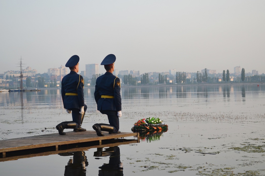 Далее все присутствующие направились в парк «Алые паруса», где представители Воронежской православной духовной семинарии провели панихиду в память о погибших на полях сражений, а курсанты Воронежского института ФСИН России спустили на воду «Венок Памяти». Из свеч участники акции выложили слово «Память».