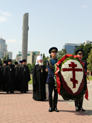 Завершали колонну священники Воронежской митрополии, отслужившие панихиду у мемориала. Затем прозвучал гимн Российской Федерации, и под марш «Прощание славянки» мимо участников церемонии прошествовала рота Почетного караула воронежского гарнизона.