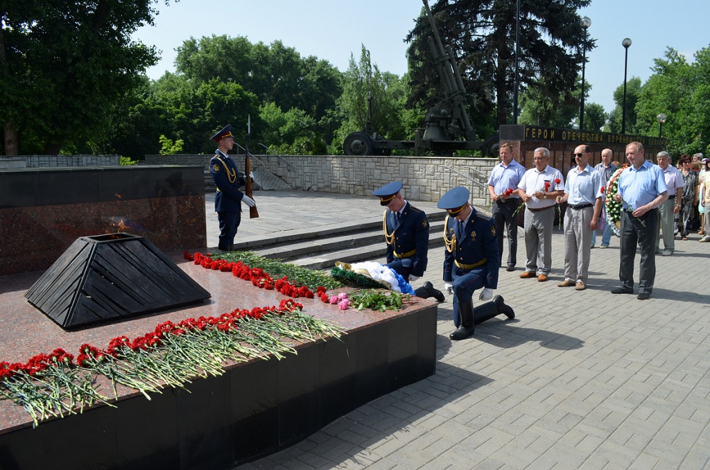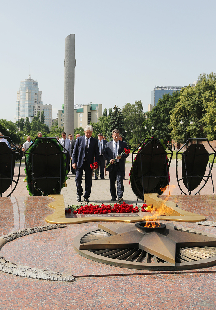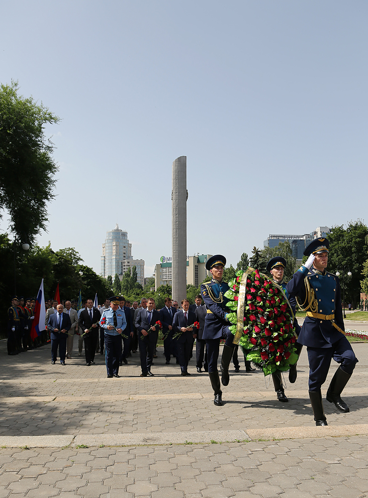 Первым цветы к Вечному огню возложил губернатор Воронежской области Алексей Гордеев. Делегацию от городской администрации представляли заместители главы Воронежа Вадим Кстенин, Сергей Глазьев, Сергей Курило, руководители структурных подразделений и управ районов.