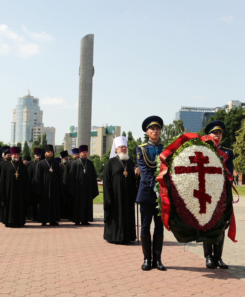 Завершали колонну священники Воронежской митрополии, отслужившие панихиду у мемориала. Затем прозвучал гимн Российской Федерации, и под марш «Прощание славянки» мимо участников церемонии прошествовала рота Почетного караула воронежского гарнизона.