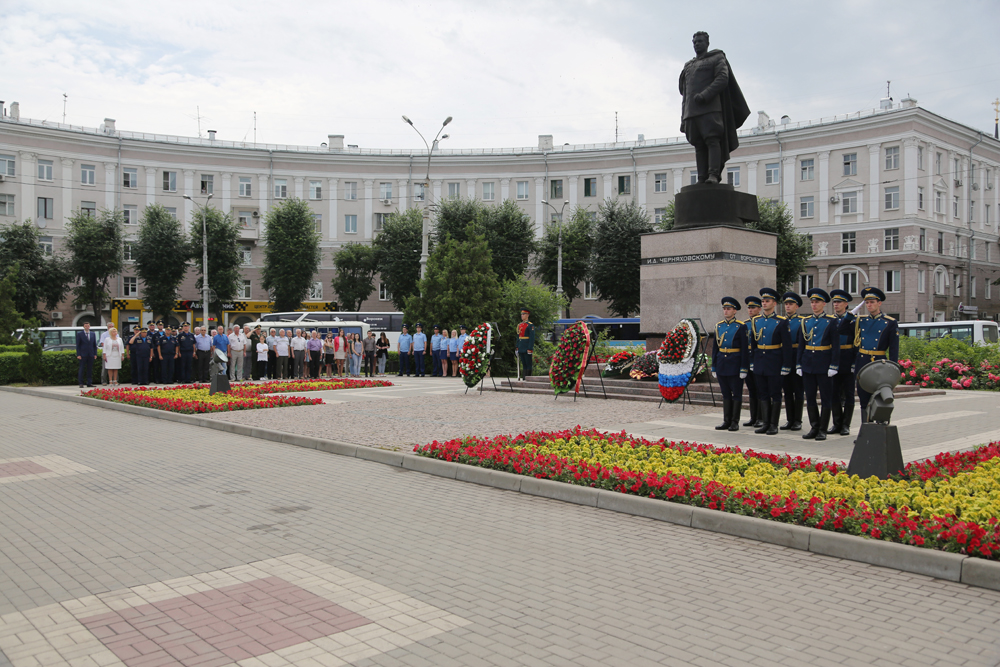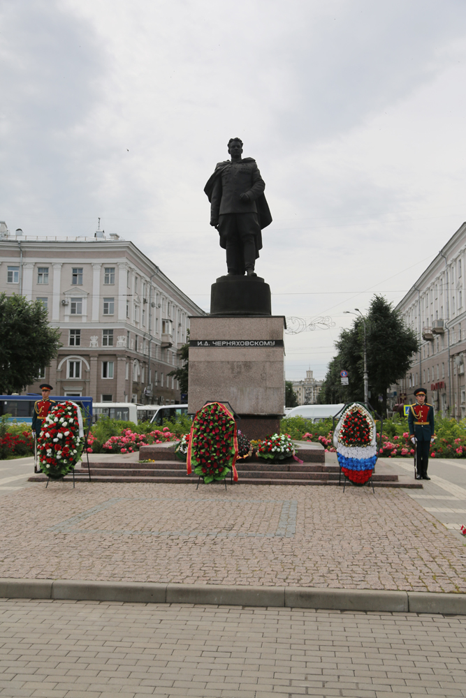 Под звуки траурного марша венки и цветы к памятнику генералу армии, дважды Герою Советского Союза Ивану Даниловичу Черняховскому возложили ветераны, военные, сотрудники прокуратуры Воронежской области, общественники.