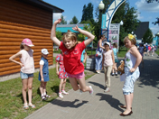 На праздник собралась детвора, отдыхающая в летних школьных лагерях. Зажжение олимпийского огня по причине пожароопасного сезона ребята не увидели, зато смогли поучаствовать в огромной массе спортивных эстафет, конкурсов и викторин.