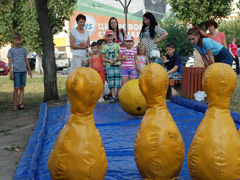 Не участвующие в основной программе праздника, смогли проявить себя на тематических площадках «Боулинг» и «Морской бой», организованных управой совместно с одним из развлекательных комплексов.