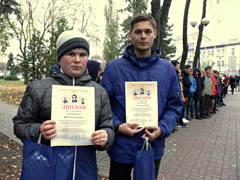 - – среди учащихся 9-11 классов: I место – Юрий Напольских (школа № 34), II место – Константин Белоусов (лицей № 65). Они награждены дипломами управы Ленинского района и памятными подарками.