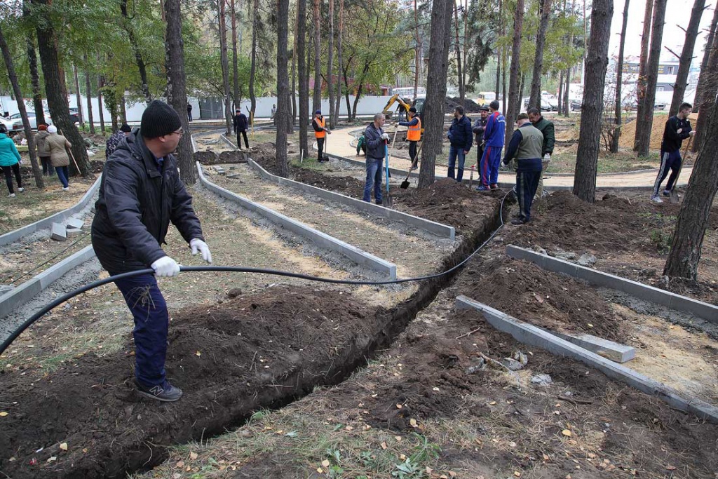 После проведения подготовительных работ подрядные организации и жители ТОС «Сосна» приступили к осуществлению первого этапа благоустройства парка, который будет завершен в ноябре.