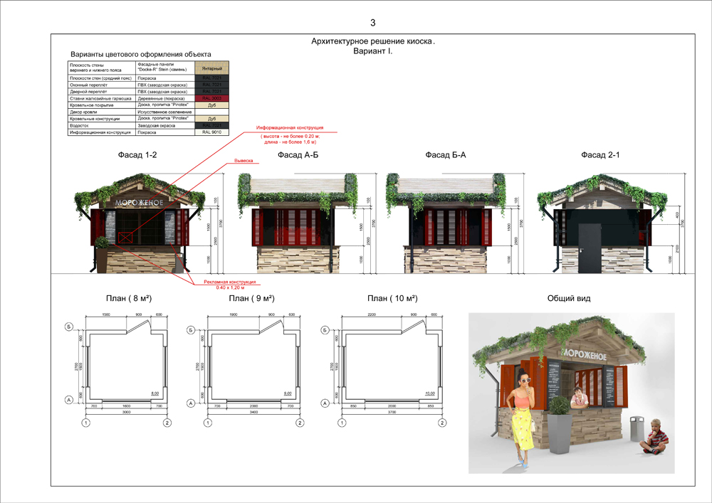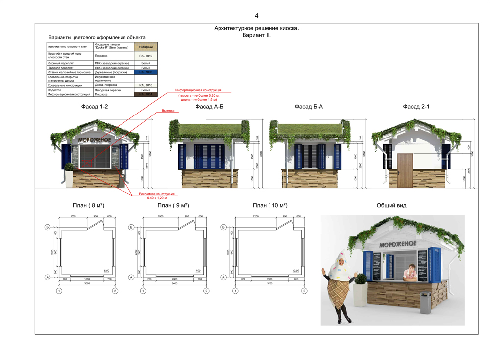 Три вида киосков, каждый их которых с разными внешними площадными габаритами (8 кв.м, 9 кв.м, 10 кв.м) и один павильон площадью 20 кв.м. будут размещены в границах муниципальных озелененных территорий общего пользования Воронежа.