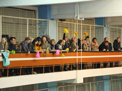 Первыми на поле вышли объединенная сборная Левобережного и Железнодорожного района и команда Советского района. Последняя уверенно победила. Волейболисты Центрального района оказалась сильнее спортсменов Коминтерновского.