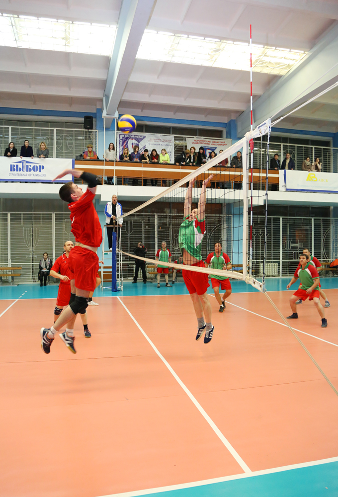 Первыми на поле вышли объединенная сборная Левобережного и Железнодорожного района и команда Советского района. Последняя уверенно победила. Волейболисты Центрального района оказалась сильнее спортсменов Коминтерновского.