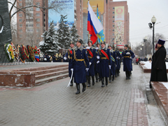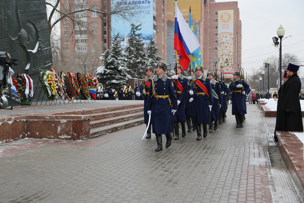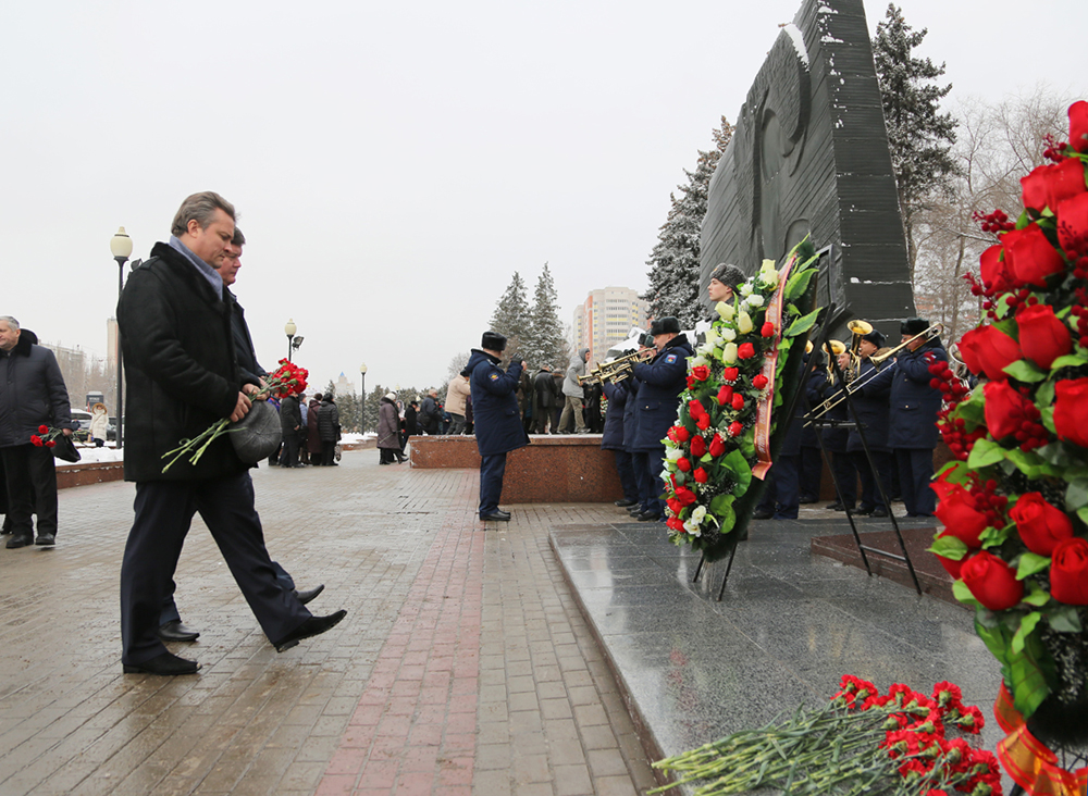 В этот же день состоялась торжественная церемония возложения венков и цветов к мемориалу «Памятник Славы». В церемонии возложения приняли участие руководители города, области, представители военных и силовых структур, а также ветеранских и общественных организаций.