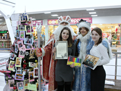 А студенты Российского государственного университета правосудия в образе Деда Мороза и Снегурочки поздравляют посетителей и приглашают принять участие в акции.