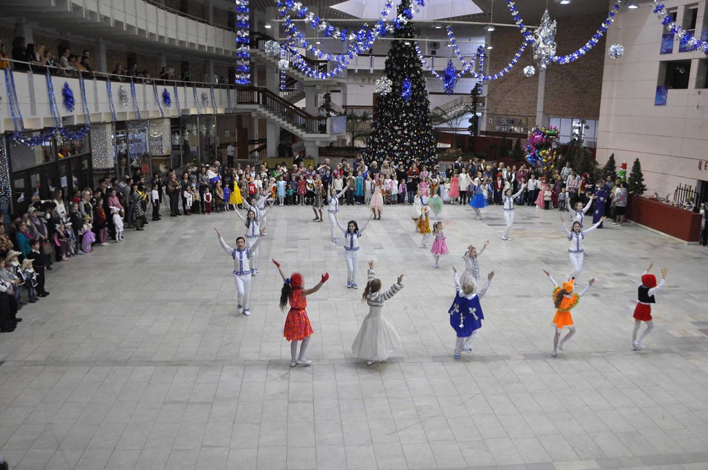 Гости праздника вместе с Дедом Морозом, Снегурочкой, и другими сказочными персонажами участвовали в конкурсах, играх, танцах, хороводах, разгадывали загадки.
