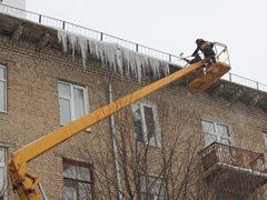 В Левобережном районе продолжаются работы по удалению наледи с кровли многоквартирных домов