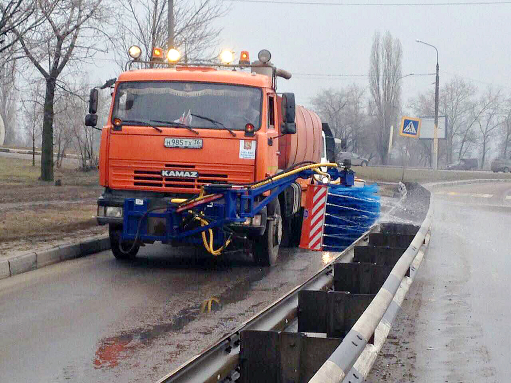 Приобретённое данное навесное оборудование позволяет мыть не только бордюрный камень, но и барьерное ограждение.