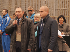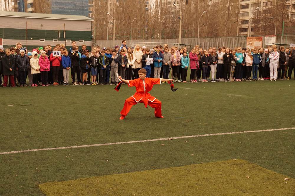 Открывая мероприятие, руководитель управления физической культуры и спорта Александр Бахтин передал в подарок школе 5 футбольных мячей и пожелал учащимся новых спортивных побед.