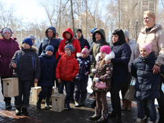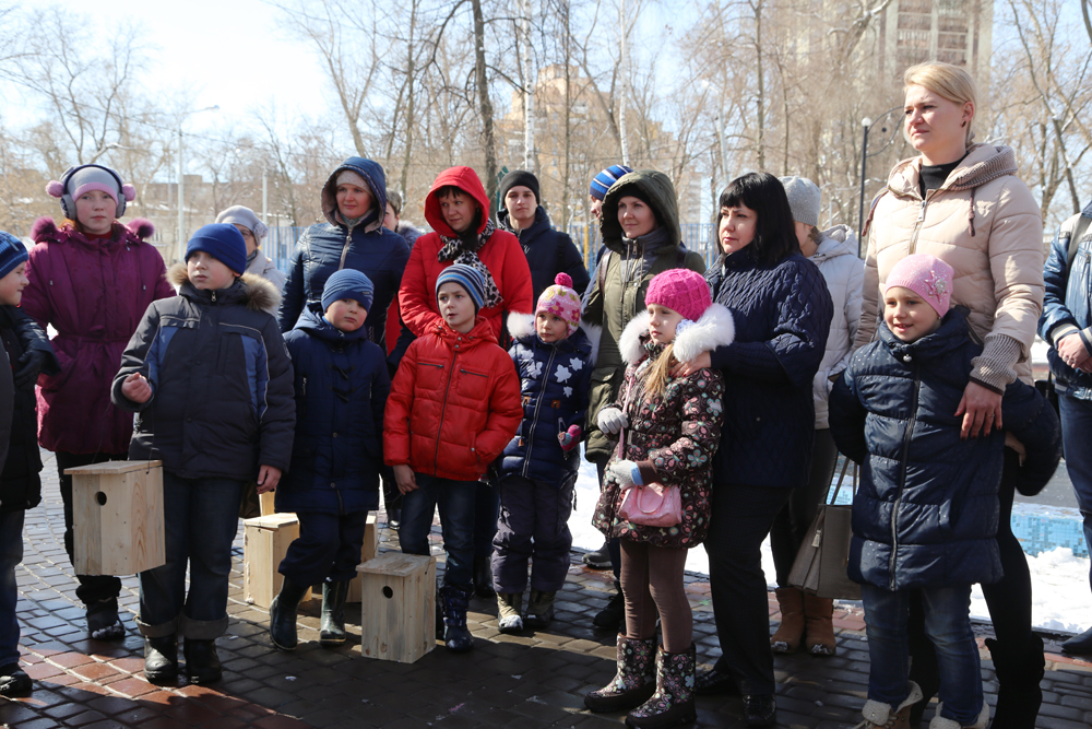 С интересным рассказом о роли птиц выступил приглашенный орнитолог Олег Киселев. Он рассказал присутствующим о том, что скворечники в парках необходимо крепить на высоте не менее 5 метров, чтобы птице было комфортнее в оживлённом парке, и не ближе трех метров, чтобы птицы не конфликтовали. Кстати, скворечник нужно не только повесить на правильной высоте, но и с правильным уклоном – для комфортного размещения птенцов.