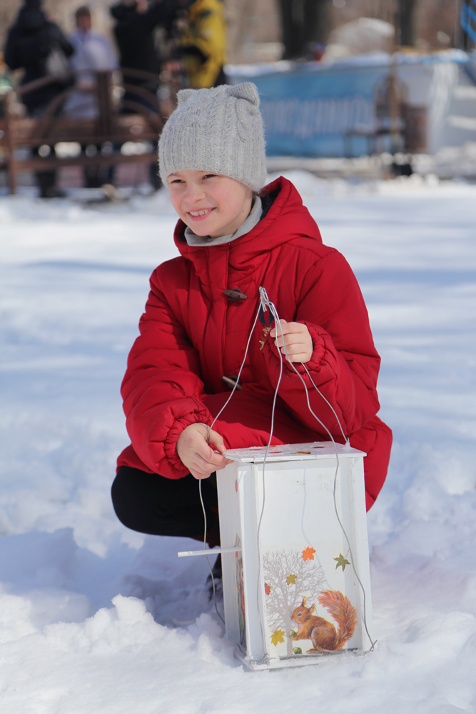 Третьеклассница Лиза Эктова принесла в парк скворечник, сделанный собственными руками. Даже название есть у этого уютного домика для птиц – «О чем мечтает сова». Самой Лизе очень бы хотелось, чтобы в ее скворечнике обязательно поселились птички и у них появились птенцы.
