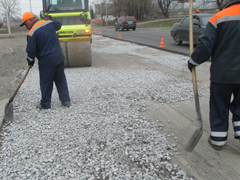 Подрядчик, согласно заключенным контрактам, производит восстановление изношенных верхних слоев асфальтобетонного покрытия на отдельных участках проезжей части.