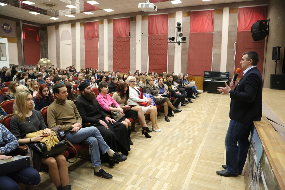 Открыл встречу Антон Ходунов - начальник Управления воспитательной и молодёжной политики, председатель студенческого профкома университета. Он сказал о важности проводимого мероприятия и о том, насколько серьёзную угрозу представляет современный терроризм не только для нашего общества, но и для всего мира. Затем выступил представитель Воронежской епархии, иерей Евгений. Далее собравшимся показали фильм, демонстрирующий страшные последствия террористических действий.