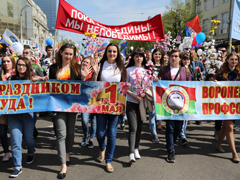 В День международной солидарности трудящихся несколько десятков тысяч воронежцев – представители трудовых коллективов учреждений образования, здравоохранения, спорта, культуры, промышленности, бизнеса, органов власти и другие – вышли на организованный областным Советом профсоюзов митинг.