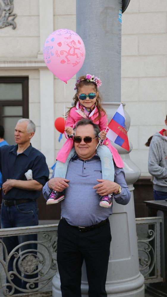 Под звуки губернаторского оркестра и громогласное «Ура!» демонстранты с флагами, транспарантами, цветами и воздушными шарами прошли от здания ЮВЖД до Никитинской площади.