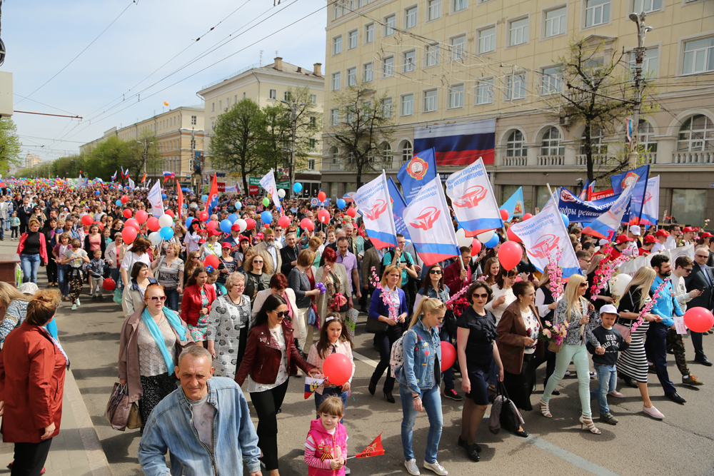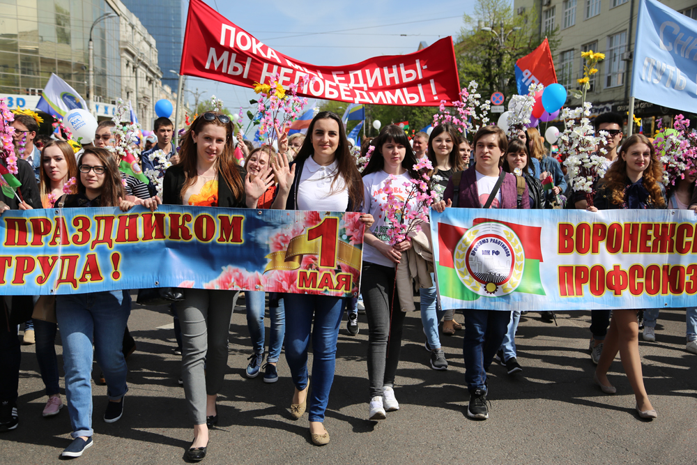 В День международной солидарности трудящихся несколько десятков тысяч воронежцев – представители трудовых коллективов учреждений образования, здравоохранения, спорта, культуры, промышленности, бизнеса, органов власти и другие – вышли на организованный областным Советом профсоюзов митинг.