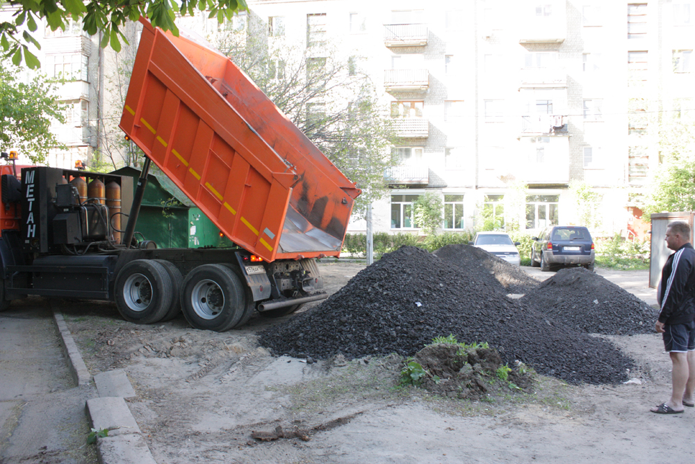 Образующийся в результате фрезерования материал складируется на территории районного комбината благоустройства и впоследствии, по заявкам жителей, завозится на улицы частного сектора и на дворовые территории.