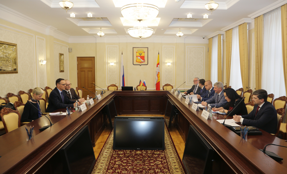 Встреча с военно-морским атташе, региональным уполномоченным Посольства Федеративной Республики Германия в Российской Федерации по Воронежской области Торстеном Итесом прошла в малом зале горадминистрации.