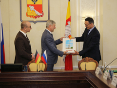 Торстен Итес поблагодарил главу города за конструктивный диалог. В завершении приёма стороны обменялись памятными подарками.