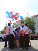 Праздник продолжился творческими выступлениями школьных коллективов. А в завершение торжественной линейки, по доброй традиции, прозвенел прощальный школьный звонок и в небо полетели разноцветные шарики, как символ прощания с детством!