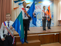 Торжественная линейка в этом учреждении началась с поднятия государственного флага воспитанниками военно-патриотического клуба "Юноармеец". Сначала ребят и педагогический коллектив поздравила директор школы Лариса Золотарева. Она отметила лучших учеников выпускных классов, тех, кто все школьные годы гордо нес звание Лицеиста! И выразила огромную благодарность учителям и родителям, воспитавших таких замечательных ребят.