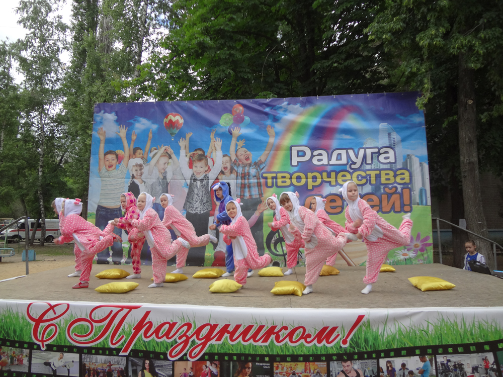 В ней приняли участие творческие коллективы Центра развития детей и юношества «Спутник». Помимо танцевальных и вокальных номеров, для маленьких гостей и их родителей районными библиотеками были организованы игровые площадки: библиотека № 9 провела детскую викторину, а библиотека № 17 – конкурс «Рисунок на асфальте».