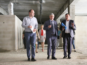 Первой стала строящаяся школа на 1224 места по улице Шишкова, включающая в себя учебный, спортивный и общественный корпуса. Представитель застройщика – генеральный директор АО «ДСК» Александр Трубецкой сообщил, что на сегодняшний день здесь завершены общестроительные работы по учебному корпусу, построены стены спортивного корпуса и ведется монтаж плит перекрытия, на общественном корпусе начата кладка стен второго этажа, ведутся работы по устройству наружных сетей водо- и электроснабжения, канализации.