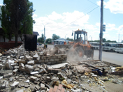 Рабочие с помощью технических средств комбината ликвидировали последствия пожара в заброшенном магазине, расположенном на дублирующем проезде улицы Антонова-Овсеенко, на конечной автотранспорта. Сваркой были срезаны металлические конструкции, а при помощи погрузчика и Камаза складирован и вывезен битый, горелый кирпич.