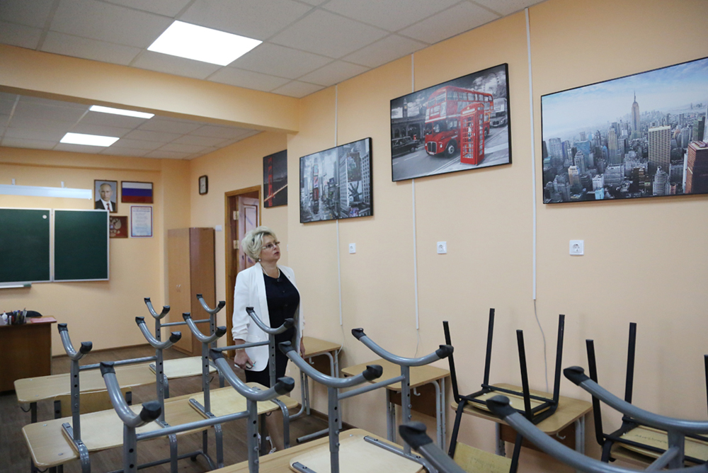 – Здесь располагались две столярные мастерские и несколько кабинетов. Благодаря программе «Содействие созданию в субъектах Российской Федерации новых мест в общеобразовательных организациях на 2016-2025 годы» из федерального бюджета на капитальный ремонт здания и приобретение оборудования были выделены около 12 млн. рублей. Нам удалось отремонтировать 8 помещений, в результате чего открылись еще 4 современных лингафонных кабинета, библиотека и конференц-зал. 250 обучающихся в результате поменяли вторую смену на первую, – рассказала директор учреждения Татьяна Новикова.