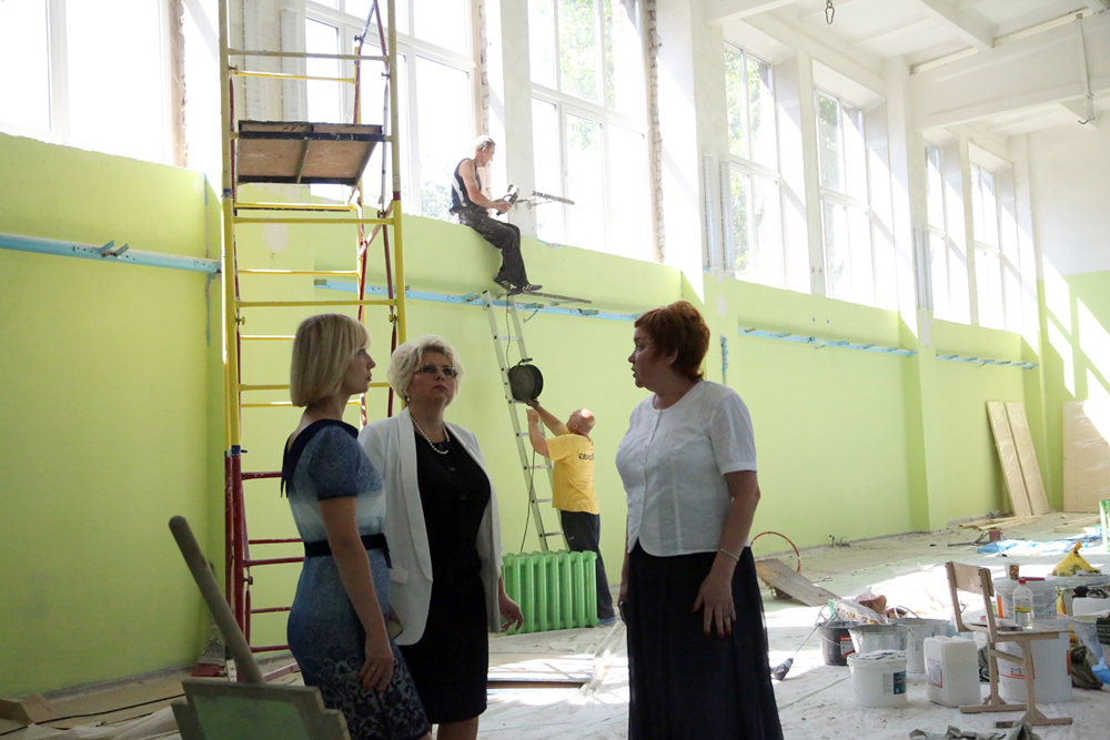 – Общестроительные работы сейчас ведутся в спортивном зале – будут замены оконные блоки, проводка, а также система отопления. На первом этаже осуществляется замена облицовки стен, системы отопления, монтаж нового потолка с освещением. На сегодняшний момент на 50% смонтирована кровля здания. К 1 сентября обновленная школа распахнет двери, в том числе и для 75 первоклашек, – заверила Оксана Витальевна.