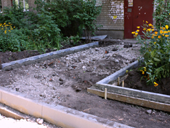 Стоит отметить, что во всех этих дворах работы выполнены на 3% - демонтирован старый бортовой камень и практически установлен новый, а так же снят верхний слой асфальто–бетонного покрытия. Работа продолжается.