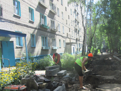 Вторая бригада демонтировала 900 погонных метров изношенного бордюрного камня и 20 кубометров асфальтового покрытия, установила 530 погонных метров бордюров и 60 погонных метров поребриков, разработала 411 кубометров грунта во дворах возле домов 2а,8а,10 и 24 по улице 25 Января.