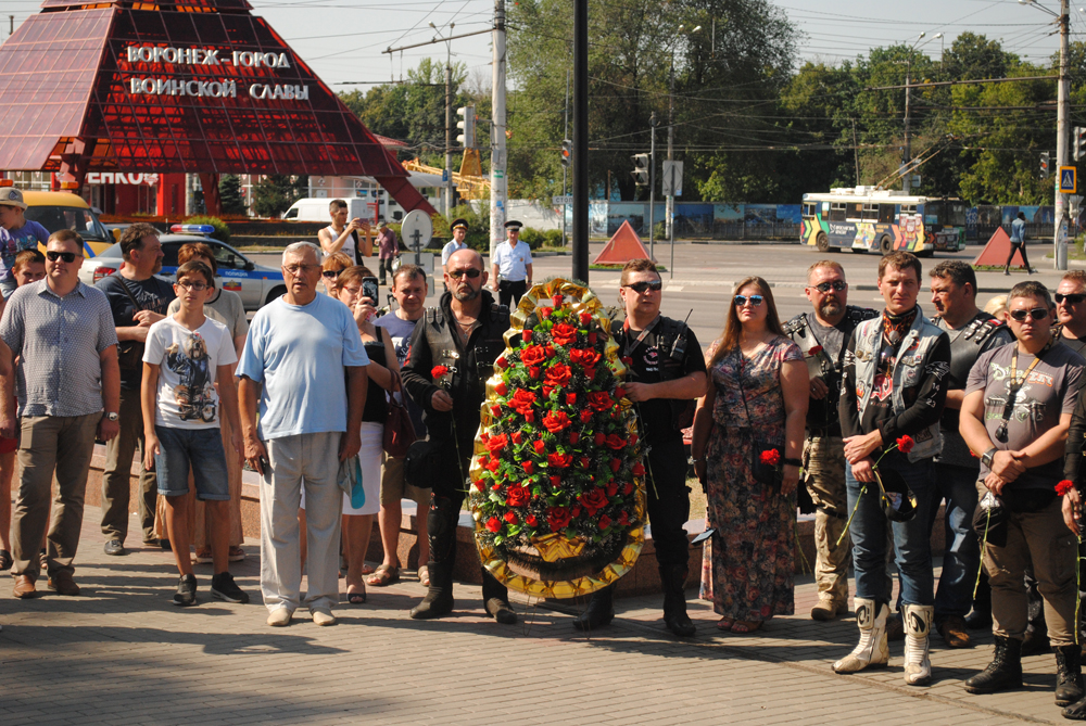 Участники автомотомарша «Дороги Победы на Севастополь 2017» возложили к Памятнику Славы цветы и венки и почтили память погибших воинов минутой молчания, после чего отправились дальше. К слову, в Воронеже колонна участников акции «подросла». Здесь к ней присоединился байкер со стажем Сергей Малков, представляющий два города – Тюмень и Йошар-Олу, а также воронежец Александр Саулин.