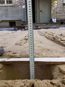 Наибольший объем работ выполнен по Остужева, 50. Здесь подрядчиком проведен полный демонтаж изношенного борткамня, разобрано асфальтовое покрытие и грунт, практически завершена установка нового борткамня и устройство оснований из щебня под тротуары, входные группы и спортплощадки. Фактически на треть уложено обновленное асфальтовое покрытие.