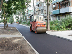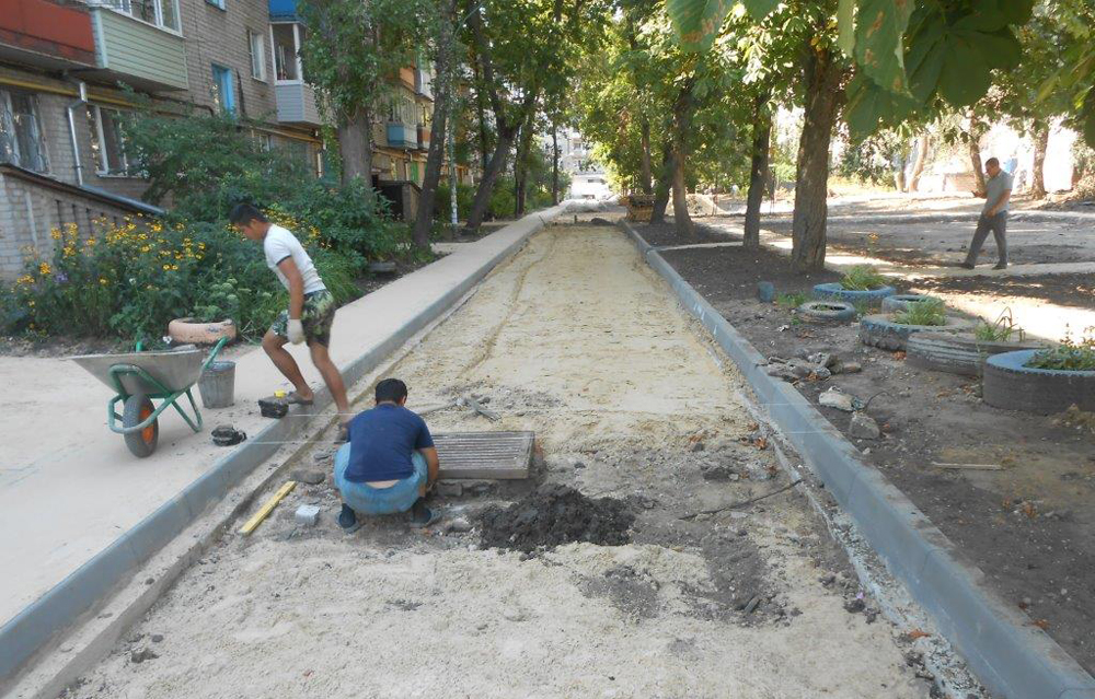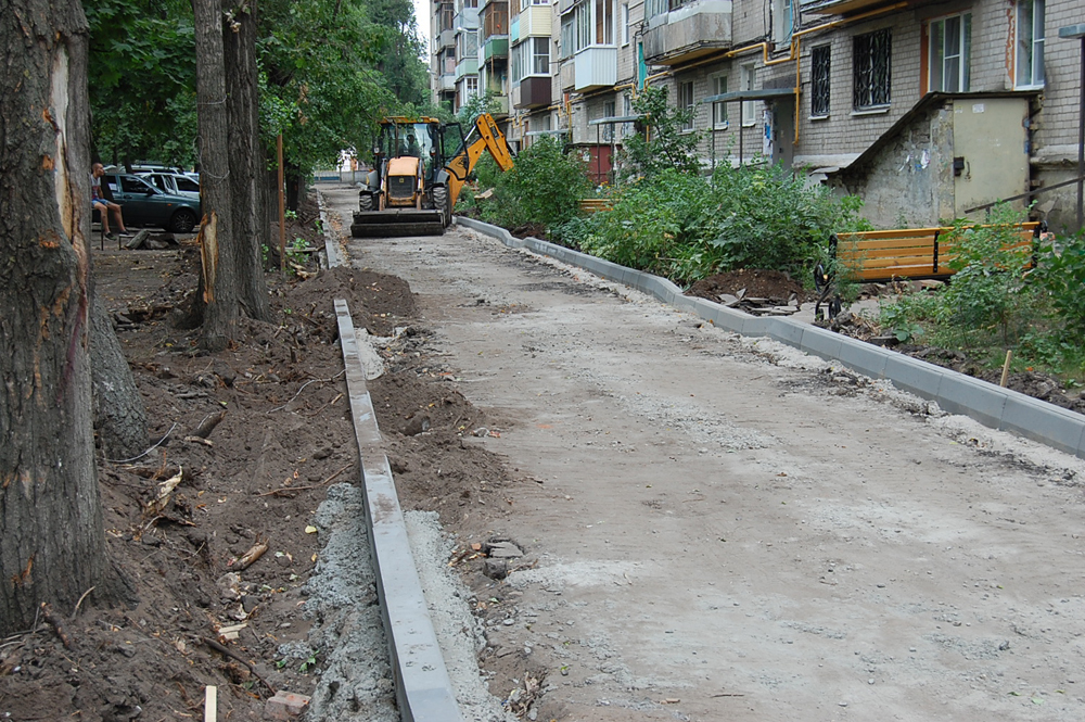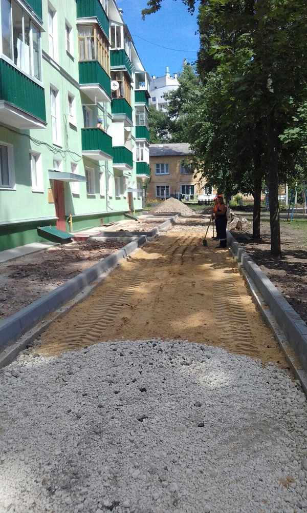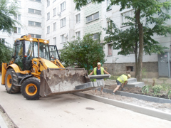 В вышеперечисленных дворах установка бортового камня выполнена на 98 %, ремонт дорожного покрытия произведен в общей сложности на 45 %, а устройство тротуаров на 33 %.