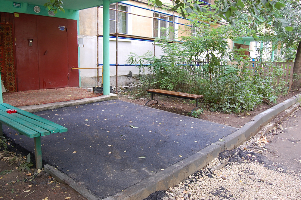 Более 80% от общего объема выполнено во дворе дома, расположенном по улице Сакко и Ванцетти, 41. Здесь, согласно перечню осталось установить малые архитектурные формы.
