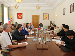 На встрече также присутствовали помощник заместителя министра Юджи Судо, главный советник отдела международной политики Масару Сакамото, представитель посольства Японии Митиюки Ватанабе, первый заместитель главы администрации по городскому хозяйству Вадим Кстенин, руководители структурных подразделений мэрии.