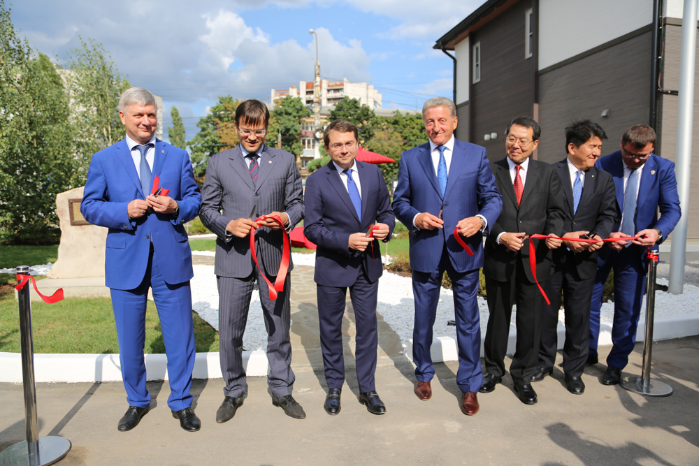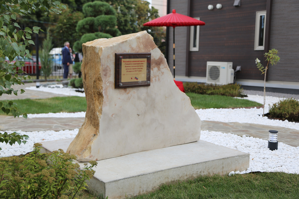После завершения встречи, состоялась торжественная церемонии завершения строительства «Умного и здорового дома» японской компании «Nice», в которой принял участие глава города Александр Гусев. Особенностью демонстрационного объекта является то, что его строительство велось с использованием клееного бруса, произведенного в Японии, с применением уникальной системы креплений. Помимо деревянного каркаса, при возведении дома использованы экологически чистые материалы – от теплоизоляции до отделочных элементов.