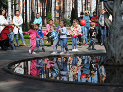 В городской части, в сквере «Совенок», расположенном по улице Минская, прошла концертно-игровая программа под названием «Этот удивительный и хрупкий мир», в котором приняло участие более 300 жителей. Зрители увидели выступления лучших художественных коллективов центра «Крылатый»: вокального ансамбля «Карнавал», ансамбля народной песни «Прялица», танцевального коллектива «Канителька» и ансамбля танца «Лайт» и многих других. Параллельно с проходящим концертом районная детская общественная организация «Единство» обустроила игровые площадки, на которых дети могли проявить смекалку, собирая большой кубик Рубика, продемонстрировать ловкость и меткость в «Веселых стартах» и игре «Цветные кольца». Каждый участник получил от управы района памятный приз.