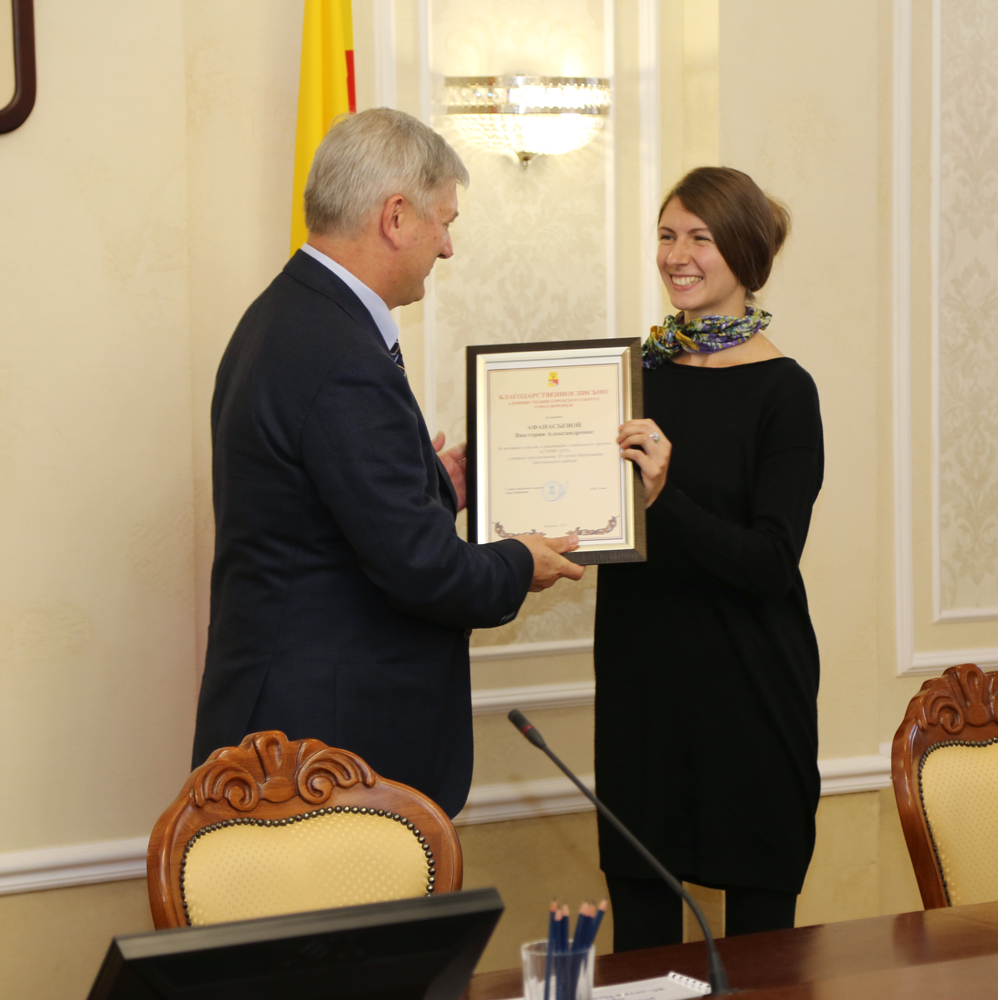 В завершение встречи мэр Александр Гусев вручил участникам стрит-арт проекта благодарственные письма от администрации города за активное участие в его реализации.