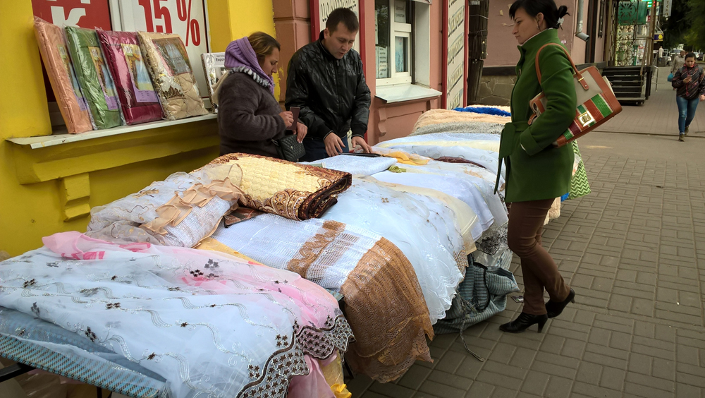 В поле зрения попали продавцы торгующие одеждой и товарами народного потребления на Московском проспекте.