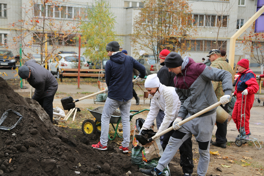 Стоит отметить, что в ряде случаев жители домов продолжают обустраивать свои территории даже после того, как подрядчики выполнили положенные по контракту объёмы работ. Например, жильцы дома по улице Краснознамённая 15, вооружившись садовым инструментом приводят в порядок клумбы, высаживают цветы и деревья.