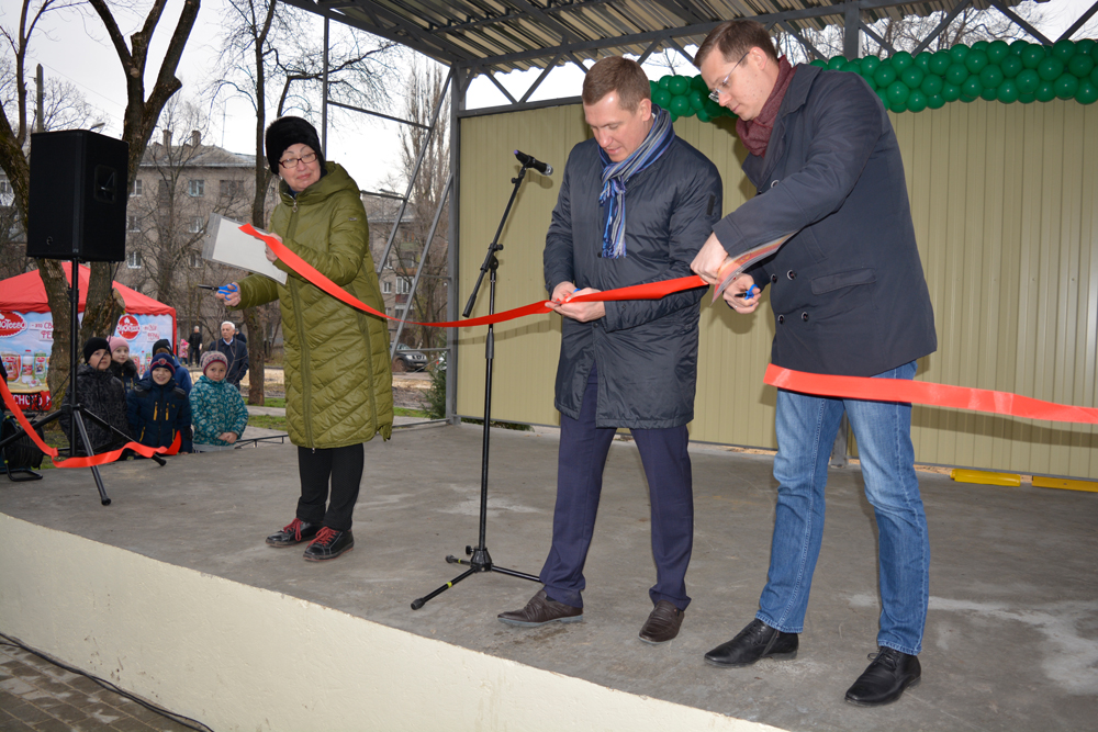 Праздничное мероприятие началось с торжественного перерезания красной ленточки руководителем управы Центрального района Александром Поповым, депутатом Воронежской городской Думы Артемом Рымарем и председателем КТОС Березовая Роща Ириной Карочинской.