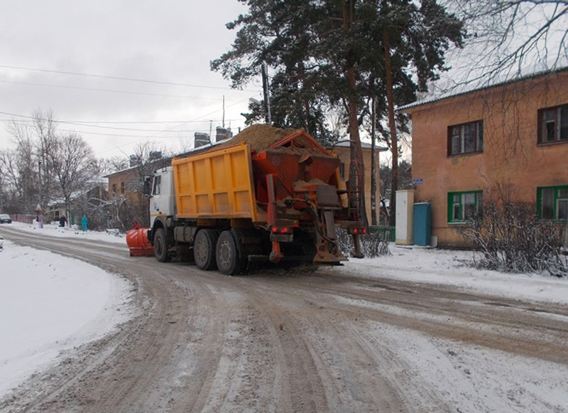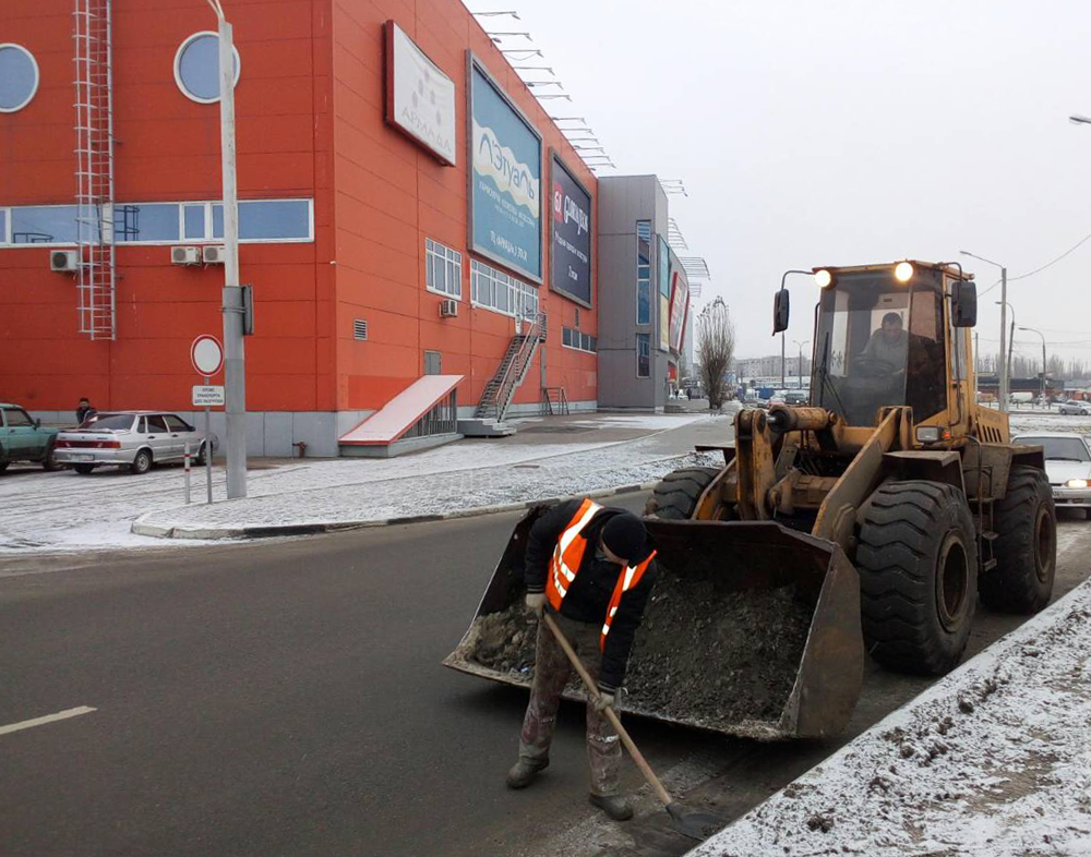 В Железнодорожном районе силами комбината благоустройства продолжается уборка и посыпание улично-дорожной сети (УДС).