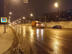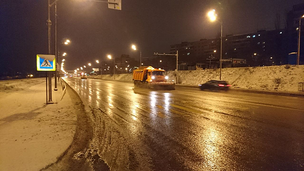 За прошедшую ночь на обработку проезжей части магистральных и второстепенных улиц Левобережного района было израсходовано 255 тонн песко-соляной смеси.